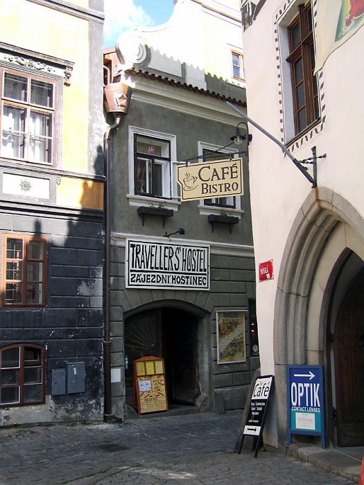 | Commercial establishments just off the village square. | |