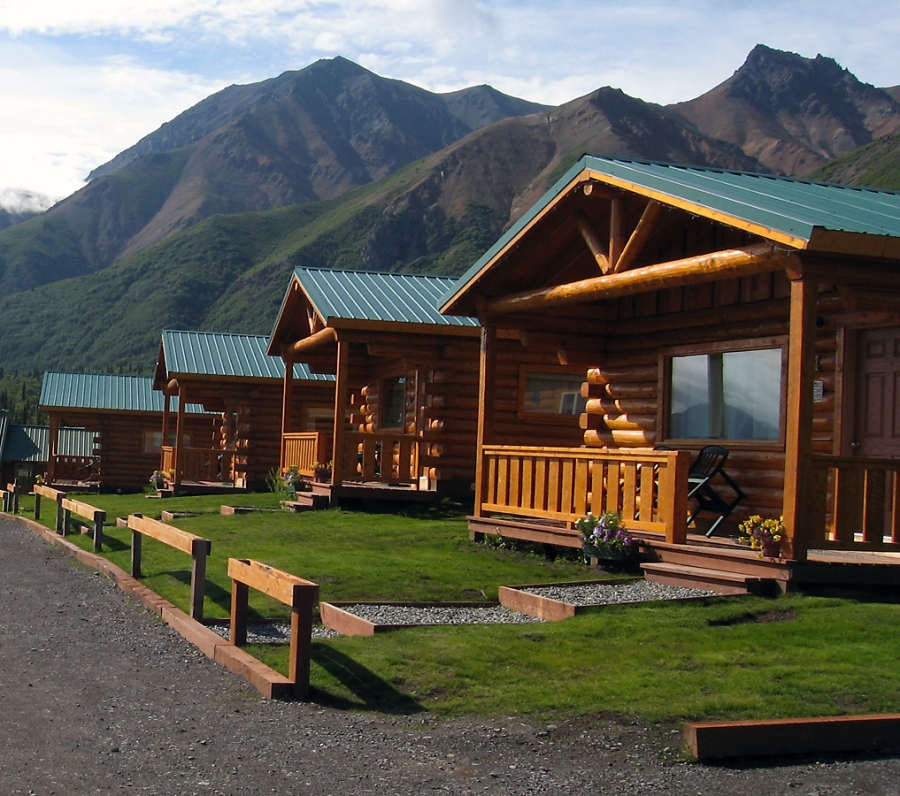 | Cabins at Sheep Mountain Lodge on the Glenn Highway. |